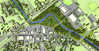 BDA produced design for this 10 acre site adjacent to the new Gunningsville Bridge in Downtown Moncton. The design calls for the restoration of the site from an unused brownfield to a natural ecosystem of saltwater marsh, freshwater marsh and upland forest with interconnecting trails, seating areas and interpretive nodes. The freshwater marsh components of the site are used to manage stormwater run-off from the adjacent roadways.