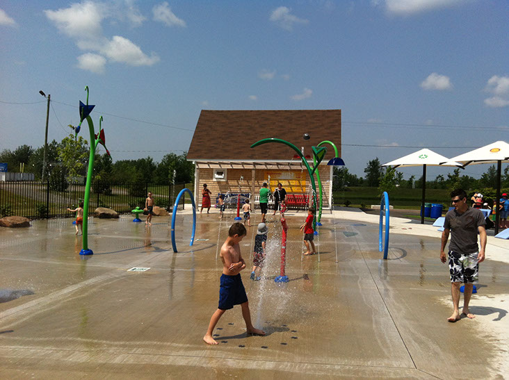 Dieppe Rotary Splash Pad • 2014 BDA prepared design plans, construction documents, and provided construction supervision for the City of Dieppe’s first splash pad project. The project included a new washroom building with a mechanical room, concrete splash pad, integration to the adjacent playground with new asphalt walkways and artificial turf surfacing, and ornamental fencing. The project was designed and constructed in 2014.